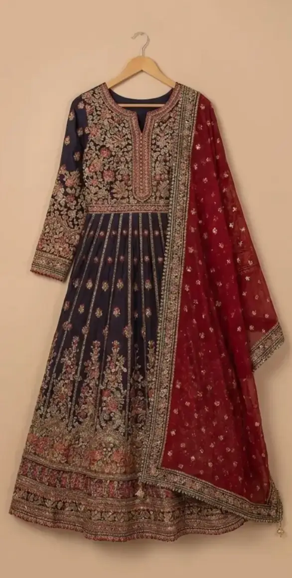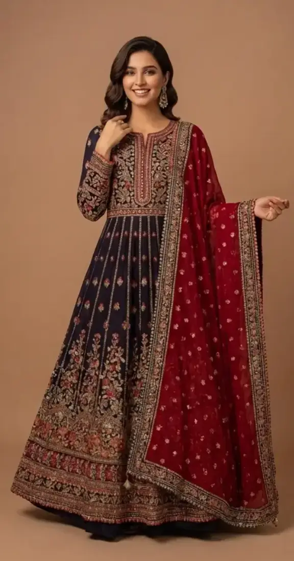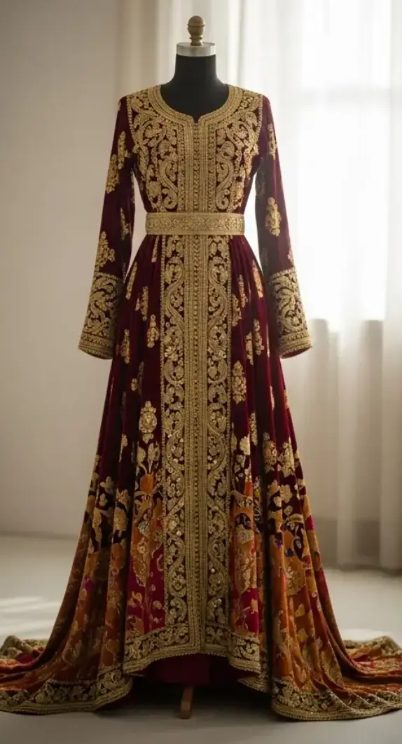 Type a simple description — fabric, silhouette, occasion, colour palette. Or upload a reference image or a rough sketch. Slayteq.ai understands what you mean.